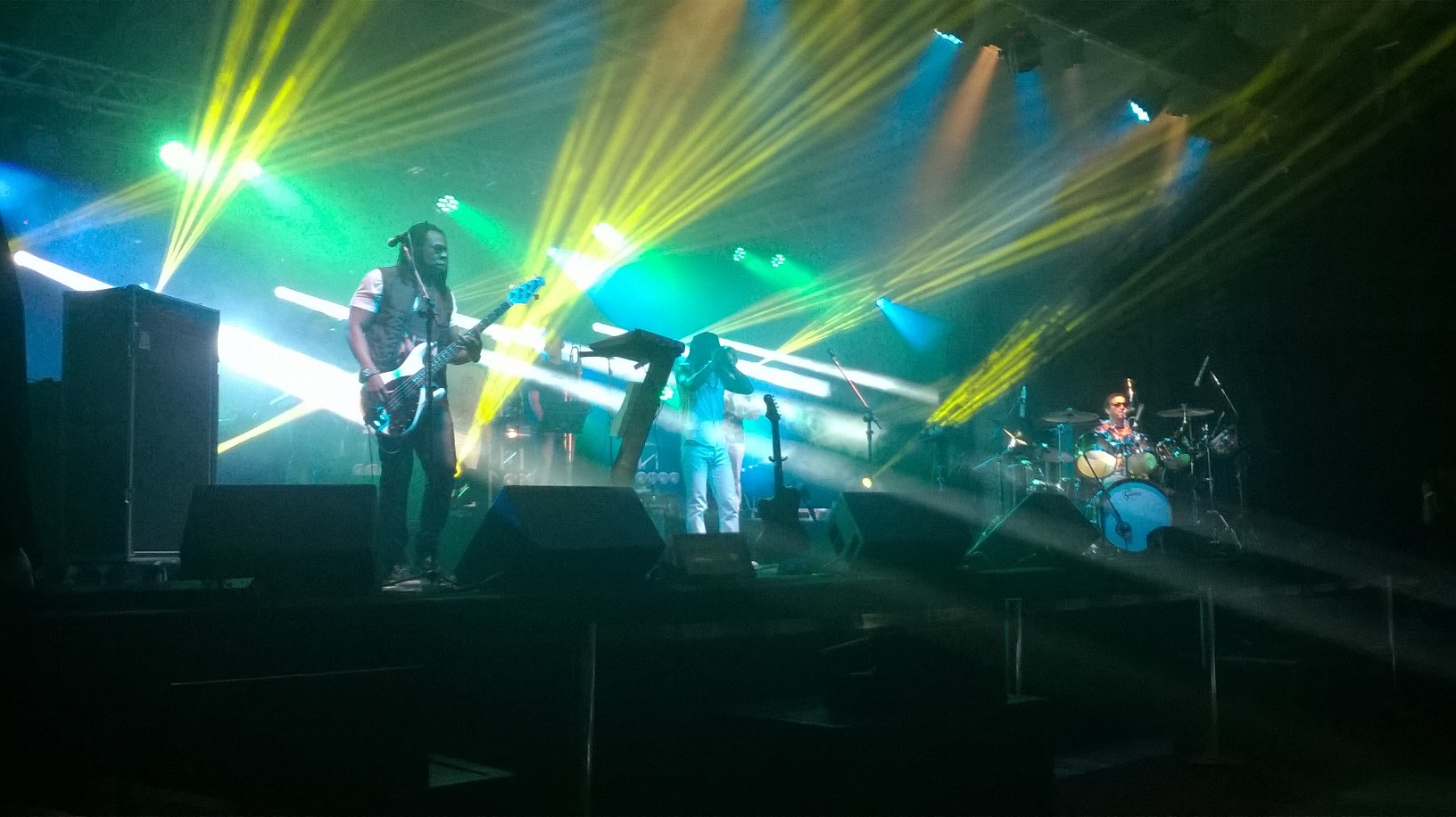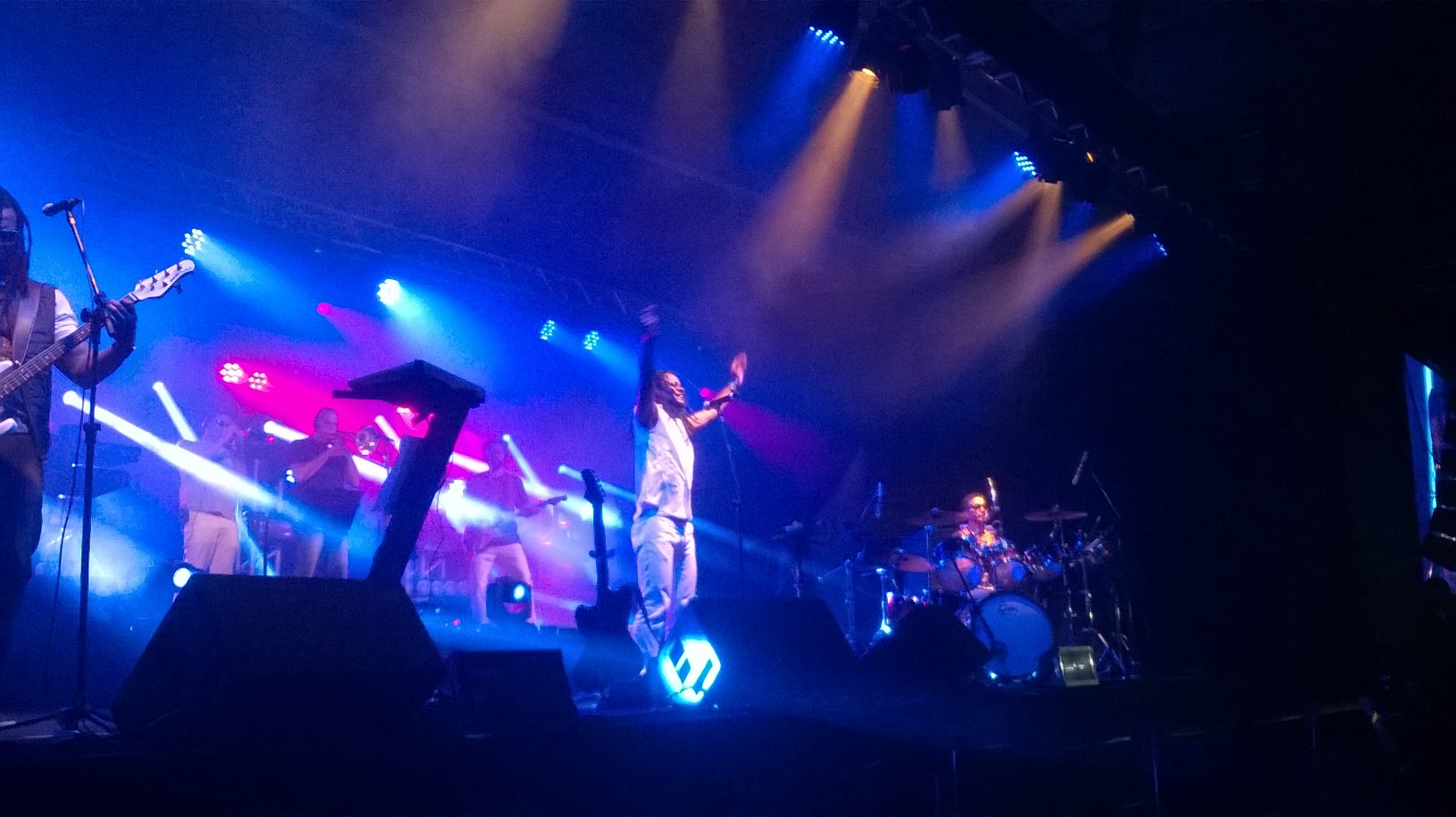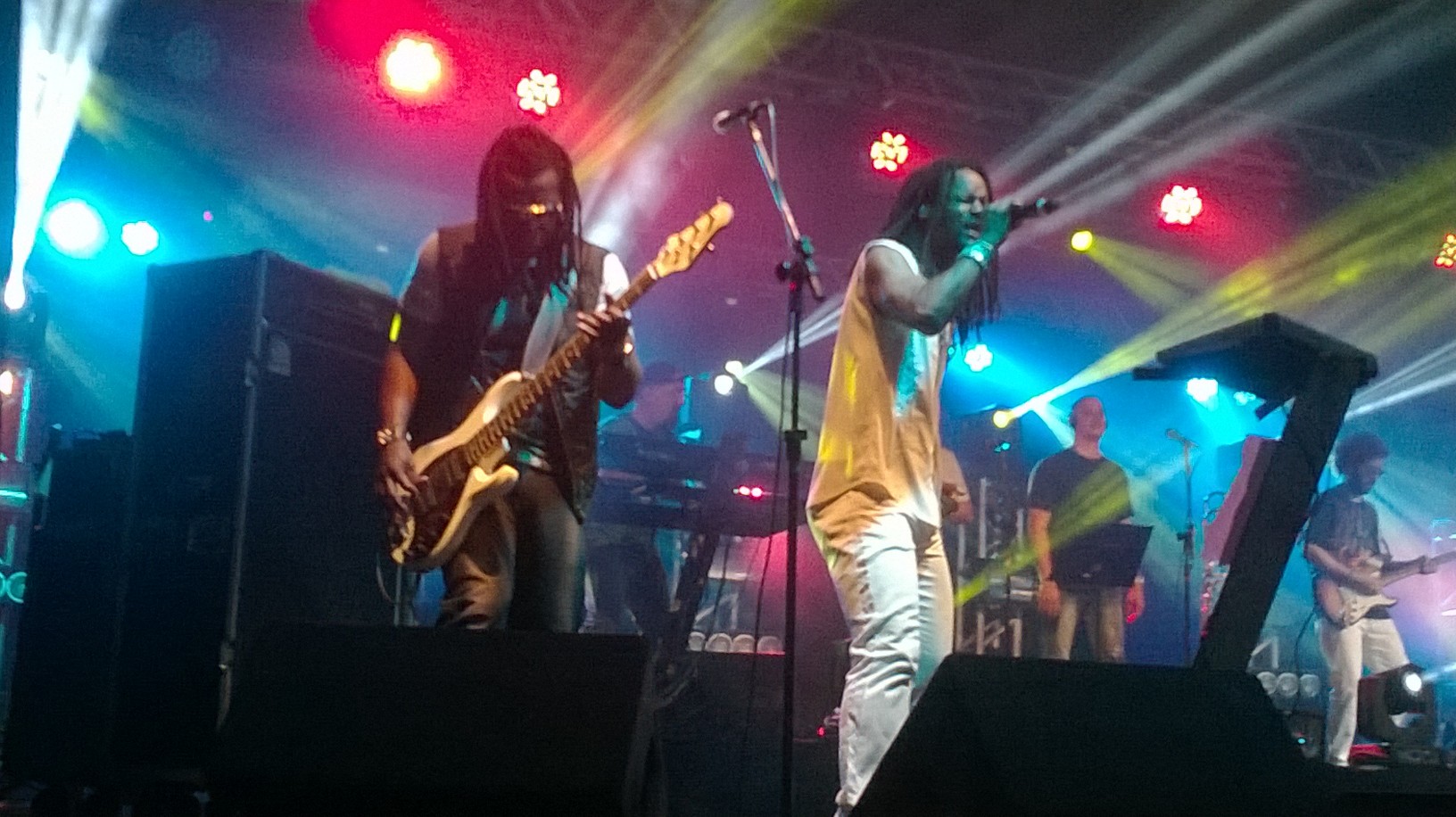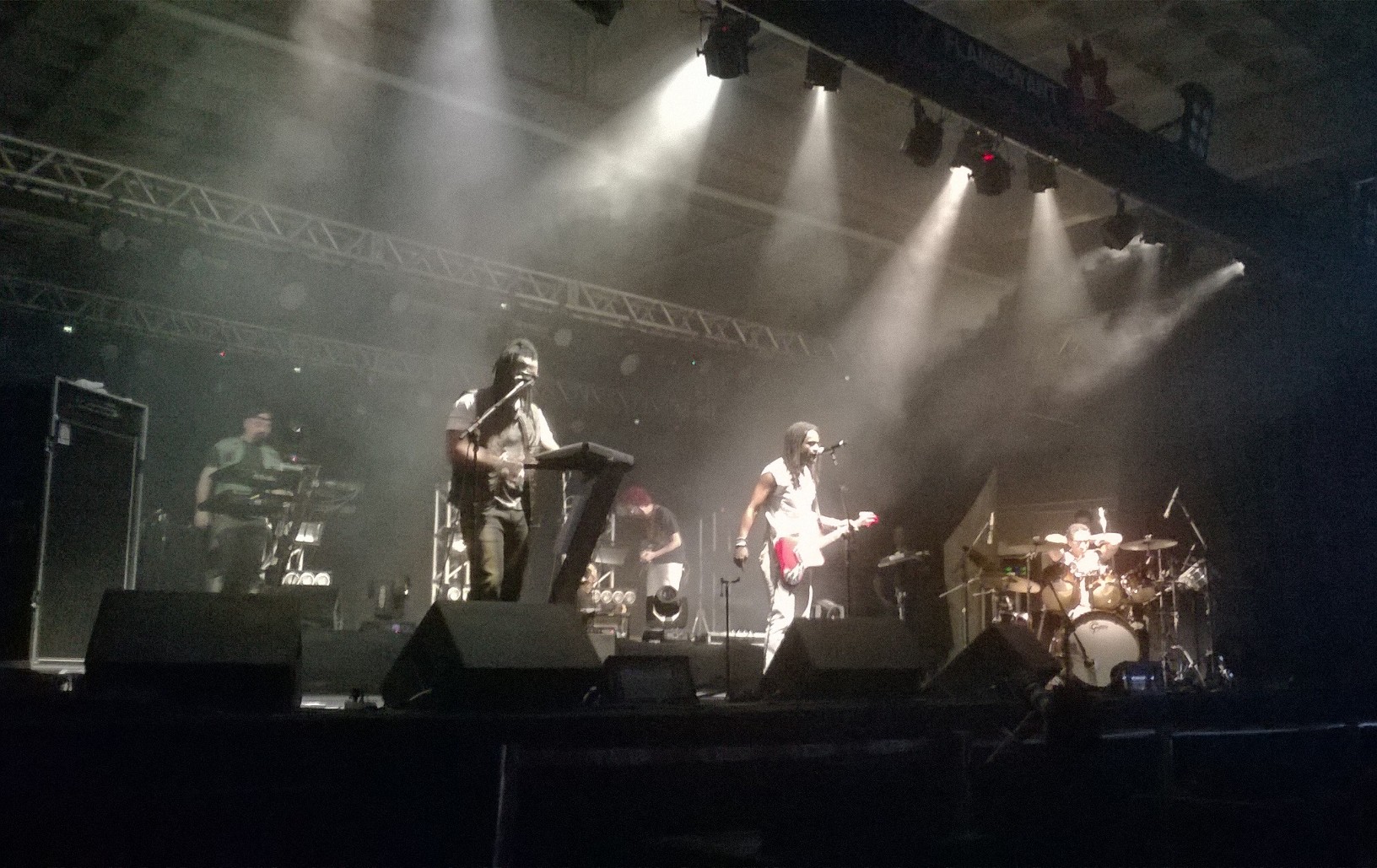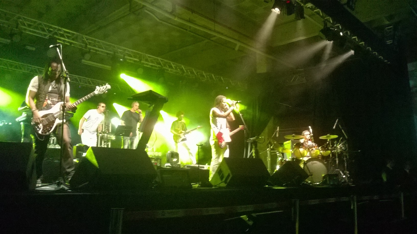 Aconteceu no último dia 23/09 mais uma edição do projeto “Flamboyant in Concert” realizado pelo Shopping Flamboyant e,dessa vez,a atração foi a banda de reggae carioca Cidade Negra.Com 25 anos de estrada e comemorando 20 anos do lançamento de seu álbum de maior sucesso,”Sobre Todas as Forças”,a banda cantou seus maiores hits e exalou simpatia com o público,Inclusive,o vocalista,o lindo do Toni Garrido,jogou a toalhinha que ele usou para secar o suor durante o show para esta que vos escreve,hehe!Além dos sucessos do Cidade,eles ainda tocaram sucessos de outros artistas como “Alagados” d’Os Paralamas do Sucesso,”Is this Love” e “Stir it up” do Bob Marley e “Reggae Nights” do Jimmy Cliff.Confiram as fotos do show: