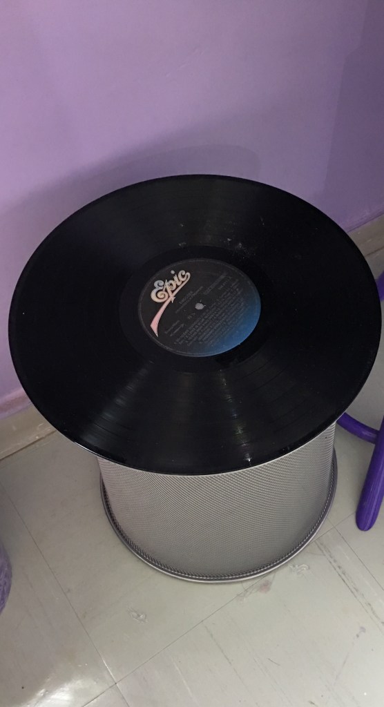 Olha só que bacana o projeto DIY (faça você mesmo) que eu vi no programa “Mais cor,por Favor” do canal GNT:uma mesinha de vinil!Você vai precisar de um disco de vinil,um cesto de metal vazado e um corte de madeira redomda um pouco menor do que o disco e cola quente.No projeto original foi usado no lugar da cola quente,que eu também usei para fazer “pezinhos” para a mesa.O passo-a-passo completo você encontra no site do programa: